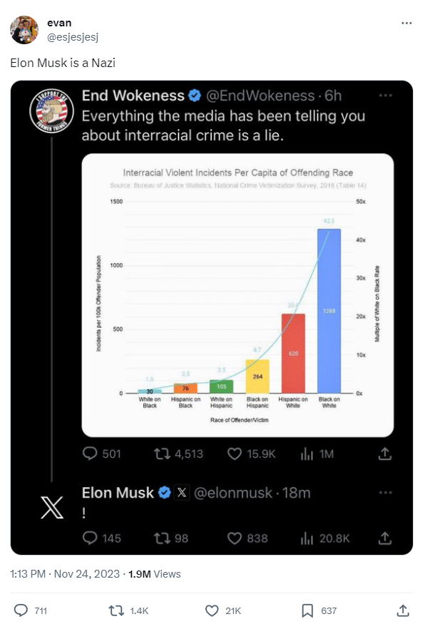 [Editor’s Note: Verified Hate will now be called “The X Files” for two reasons. First, the verification process on the social media site has changed, and verified accounts now don’t carry the same weight as they once did. What matters is the number of impressions a post gets. Second, obviously, “Twitter” no longer exists, because it is X.]