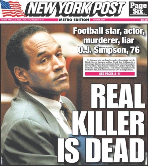 O.J. Simpson is dead. The always amusing New York Post declared: