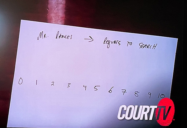 Next, in an almost theatrical moment, Mr. Biniazan showed Judge Matthew Hoffman a sheet of paper on which were written the numerals zero through tent, and asked if he could use it for “demonstrative purposes.”