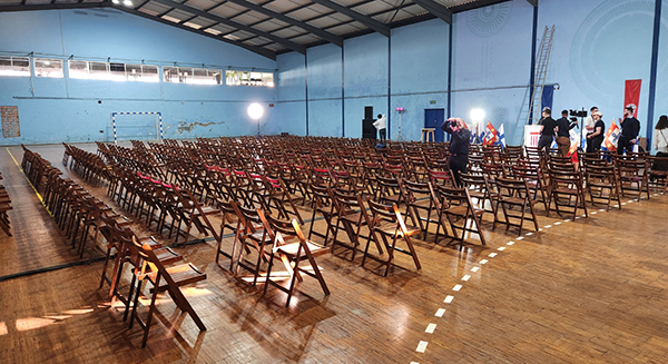 With success comes enemies. The venue was not announced until just before the event, but the owners canceled under political and media pressure. After a desperate search, Reconquista found this indoor soccer field.