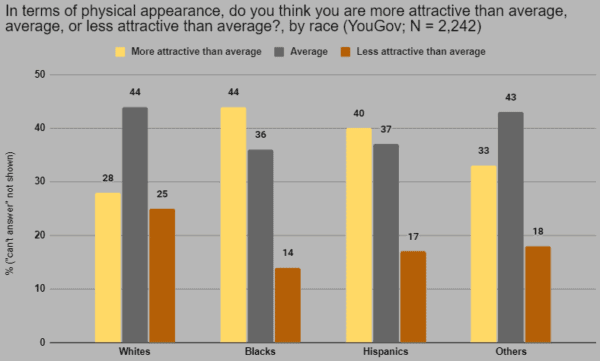 In terms of physical appearance, do you think you are more attractive than average, average, or less attractive than average?: