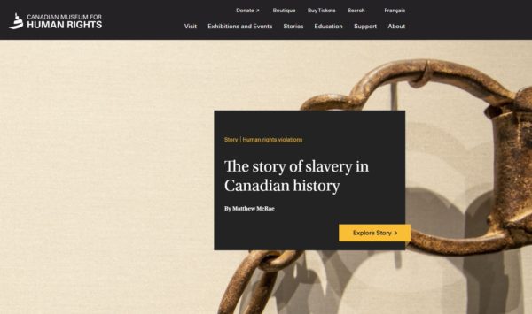 The very next screen as you scroll down says that black history is Canadian history, and the next one after that is the story of slavery in Canadian history.