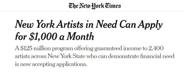 Who got left out? And just last month, New York State said it would pay $1,000 a month to 2,400 artists – but only for “communities that are historically underserved.”